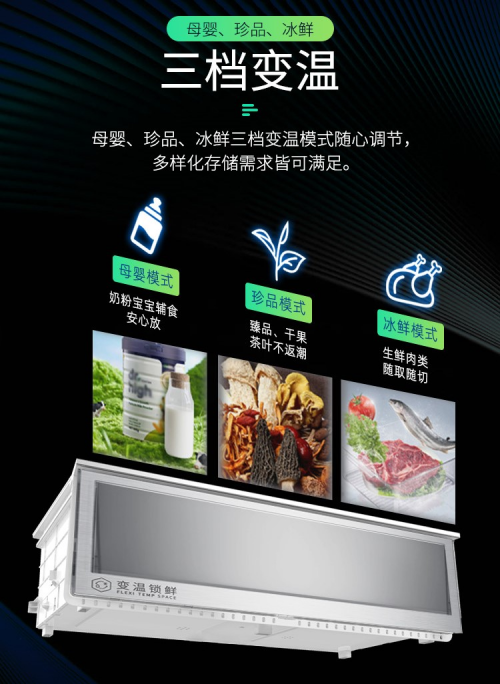 针对母婴、珍品、冰鲜等细分场景,澳柯玛双拼全嵌冰箱提供三档变温抽屉:母乳模式(4℃)确保营养成分稳定,珍品模式(-2℃)延长干货保质期,冰鲜模式(0℃)让刺身口感更细腻。其全空间AI主动离子杀菌系统,通过正负离子群24小时持续巡航,可杀灭99.99%的常见细菌,并分解异味分子,创造健康安全的储鲜空间。