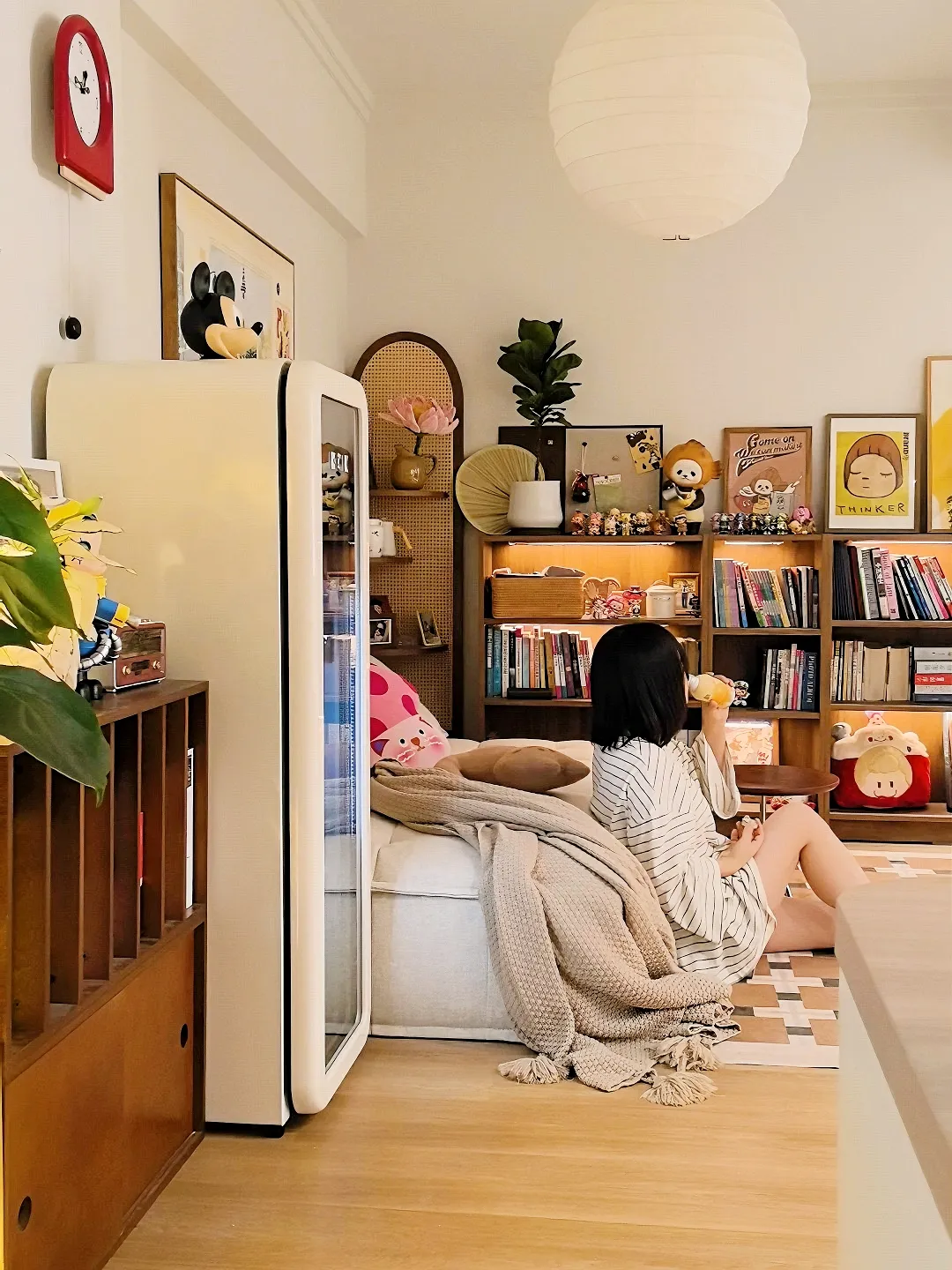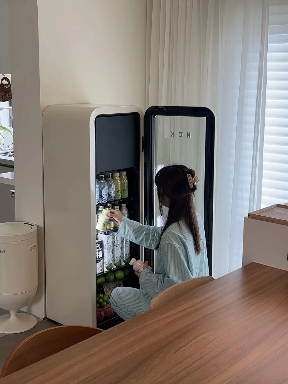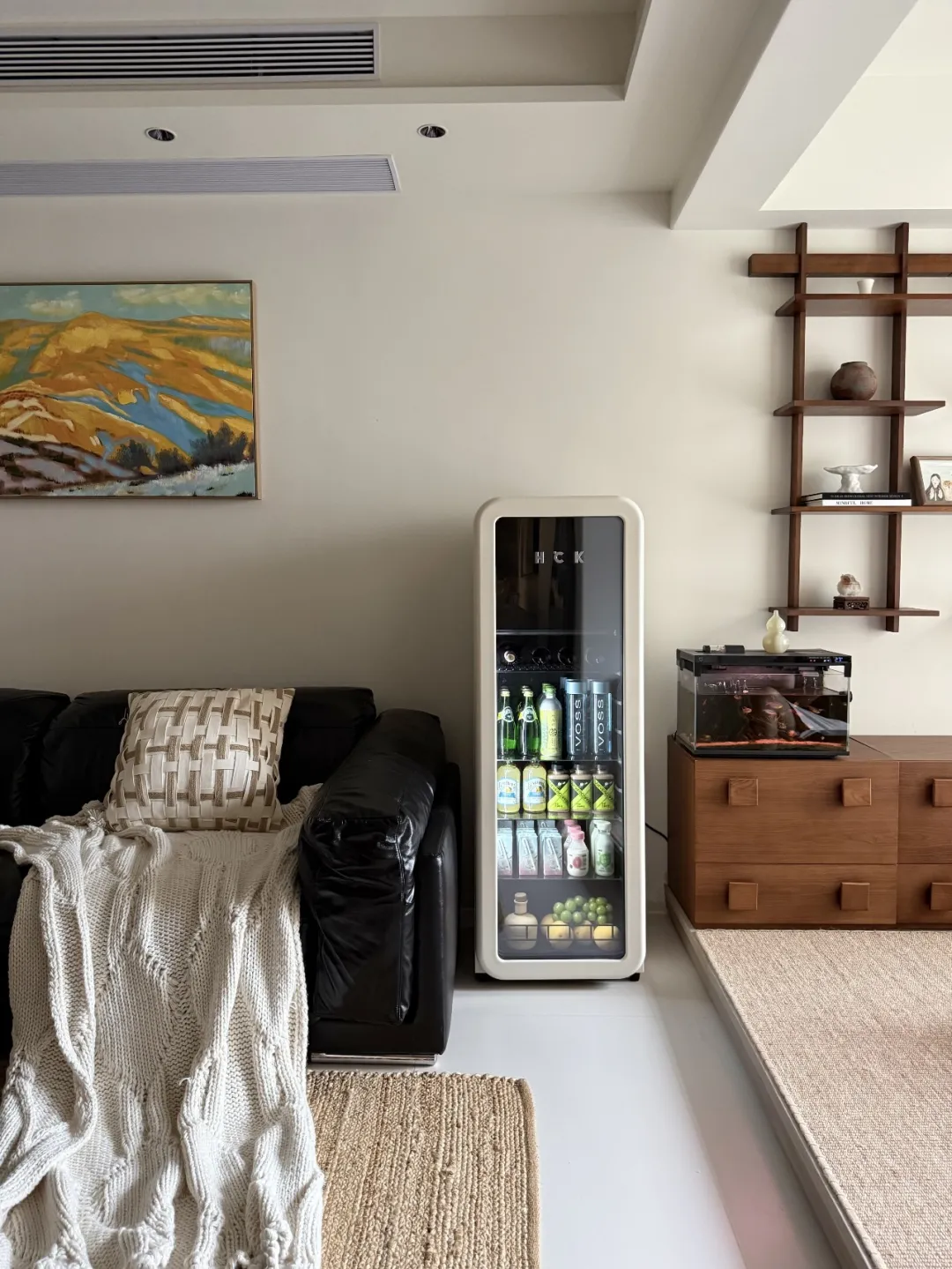 尤其是春节期间,瓜果零食、饮品酒水的囤货量剧增,传统冰箱放在客厅显得笨重又突兀,为了不打破节日氛围还得精心装饰,而放在厨房又要频繁往返取放,难免扫了团聚的兴致。