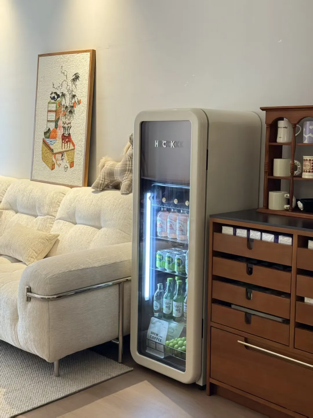 纤纤吧,正是这份用心最生动的体现。它带着复古美学的温柔质感,自然融入客厅景致,凭借酒饮透过玻璃门体呈现出的丰满治愈,成为装点年味的一抹亮色,更凭分区精储的扎实实力,稳稳承接全家的春节囤货需求。