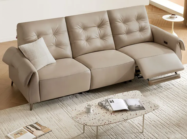 可尚G518做的,就是把这种体验移植到了沙发上。它的坐垫和靠背角度经过了专门调校——当你躺下去,腿部会微微抬升,让膝盖高于心脏。这个看似不起眼的角度变化,带来的体感差异是巨大的:脊柱的纵向压力被分散到整个背部,腰椎能感觉到明显的托举感,连膝盖和脚踝都有种“卸了力”的松弛。