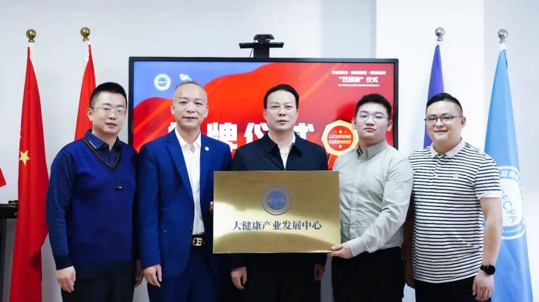 湖南省企业文化促进会亲清政商文化建设委员总干事兼大健康产业发展中心执行主任王海乔,大健康产业发展中心主任、云医链健康管理集团总裁唐子翔,湖南省企业文化促进会亲清政商文化建设委员会大健康产业发展中心副主任、湖南纽象健康科技有限公司总经理曹立峰,湖南省企业文化促进会亲清政商文化建设委员会大健康产业发展中心总干事、纽象健康副总经理魏时燕亦共同登台,喜接“大健康产业发展中心”牌匾。