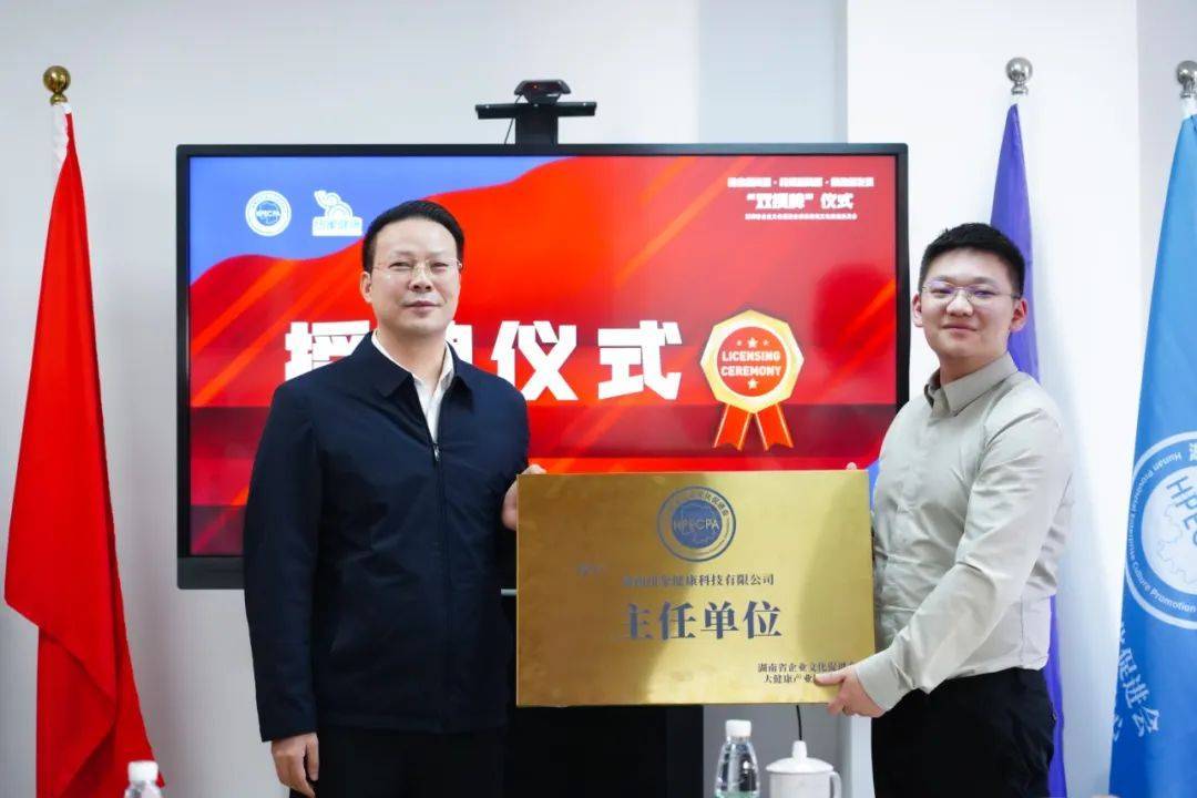 随后,湖南省企业文化促进会亲清政商文化建设委员会“双授牌”仪式正式举行。湖南省企业文化促进会驻会副会长、亲清政商文化建设委员会执行主任罗贵上台授牌,大健康产业发展中心主任、云医链健康管理集团总裁唐子翔上台喜接大健康产业发展中心“主任单位”牌匾。