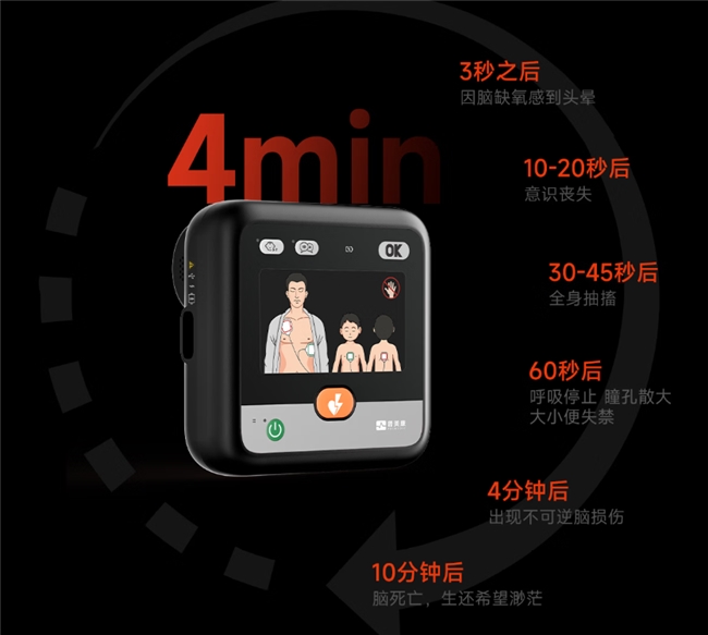 资料显示,这款便携式 AED 集轻巧便携、超长续航、简易操作于一体,完美适配家庭、办公、户外等多元急救场景。整机仅1kg,轻盈易携、收纳方便,同时达到IP66 级防尘防水,可抵御高海拔、严寒、高温等极端环境,从容应对戈壁、沙漠、山地等复杂条件,无论是居家常备、户外探险,还是马拉松、越野赛事等大型活动保障,都能快速响应、稳定施救。