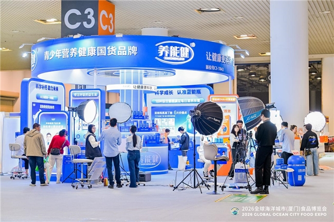 3月29-31日,2026全球海洋城市(厦门)食品博览会盛大启幕,本届展会以“向海图强‘拼食力’新质促发‘蓝引擎’”为主题,汇聚全球海洋食品产业创新成果。厦门本土儿童科学营养标杆品牌养能健重磅亮相,在展会C位区域打造72平方米高端特装展台,品牌全体IP研发老师悉数线下参展,现场开启沉浸式直播,以饱满热情与专业实力成为展会焦点,尽显儿童营养领域的品牌魅力。
