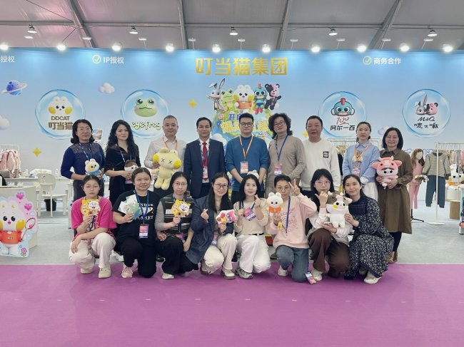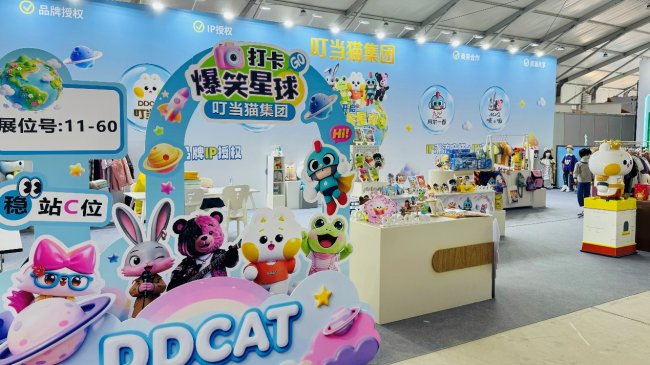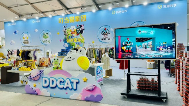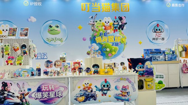 在这场行业巅峰舞台上,叮当猫国际控股集团携旗下四大品牌——叮当猫DDCAT、阿尔一百r100、艾弗洛蛙eyefrog、唛之啾M&Q,以及重磅动漫IP 《爆笑星球》 主角团亮相11号馆,以“全龄覆盖、全品类布局”强势吸睛,将IP潮流穿搭与文创潮玩的双轮驱动战略全面落地,为参展观众、渠道商与合作伙伴献上一场融合欢乐、美学与商业机会的沉浸式体验。