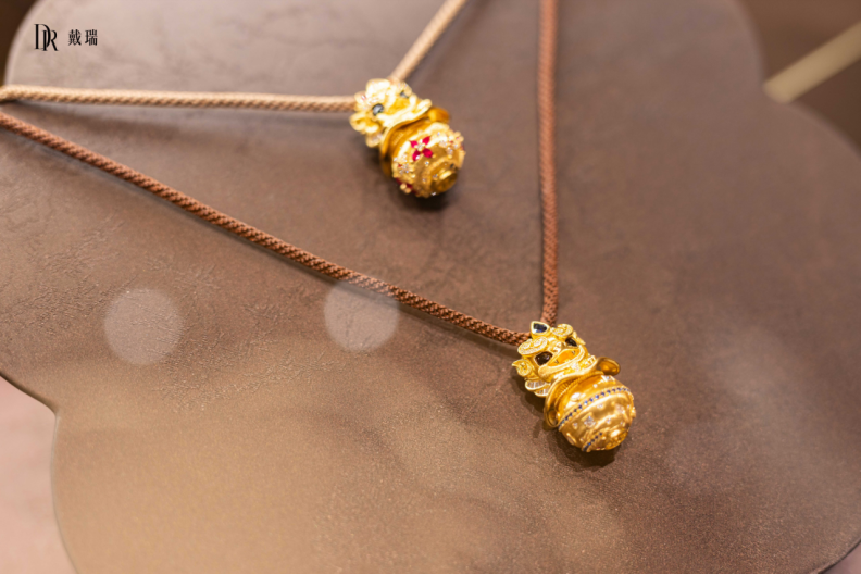最受瞩目的首发之作,当属DR黄金貔貅系列——不同于市面上二合一的貔貅,DR溯源古典,重塑这只东方招财瑞兽:“貔”为阳,象征开拓进取的招财能力;“貅”为阴,代表安稳智慧的守业之能。两尊神兽分立于一枚可旋转的钱袋之上。神兽认主,其鼓囊而闭口的钱袋内,将容纳唯一主人的生辰珠,底部镌刻的“永镇府库”的契约铭文,寓意守护之约的正式订立。最特别的是,在瑞兽完成定制后,用户将能于体验店,完成一场专属的“认主仪式”:择吉时,迎瑞兽,嵌灵珠,定契约,以古老仪式,赋予信物独一无二的灵性。
