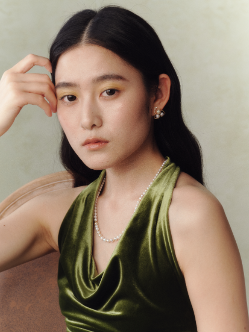 珍珠与银隔珠间隔排列,整体呈V字形,自然延展颈部线条。尾坠的两颗大溪地珍珠优雅而贵气,更妙的是,通过花生扣自由调节,可以将这两颗大溪地珍珠转到颈后作为苏托尔项链佩戴——搭配露背装时,转身之间珠光若隐若现,惊艳而不刻意。日常通勤时,它又能与短圆链叠戴,V字造型拉长脸型,层次分明。一条项链,既紧跟叠戴趋势,又从正装到露背,从通勤到派对,全场景轻松适配。