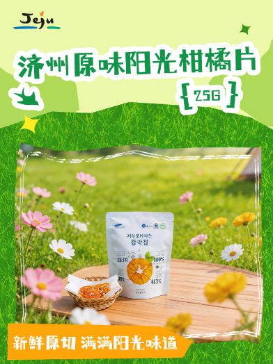 济州One Food自2015年成立以来,始终坚持以济州本地高品质农产品为核心原料,致力于将济州的自然馈赠转化为健康、便捷的零食产品。其明星产品柑橘片,精选济州本土优质柑橘,采用去皮慢烘工艺,最大限度保留果实的水分与原生果香,口感脆嫩多汁、不柴不腻。同时,独立小包装设计便于随身携带,满足消费者随时随地解馋、补充能量的需求。