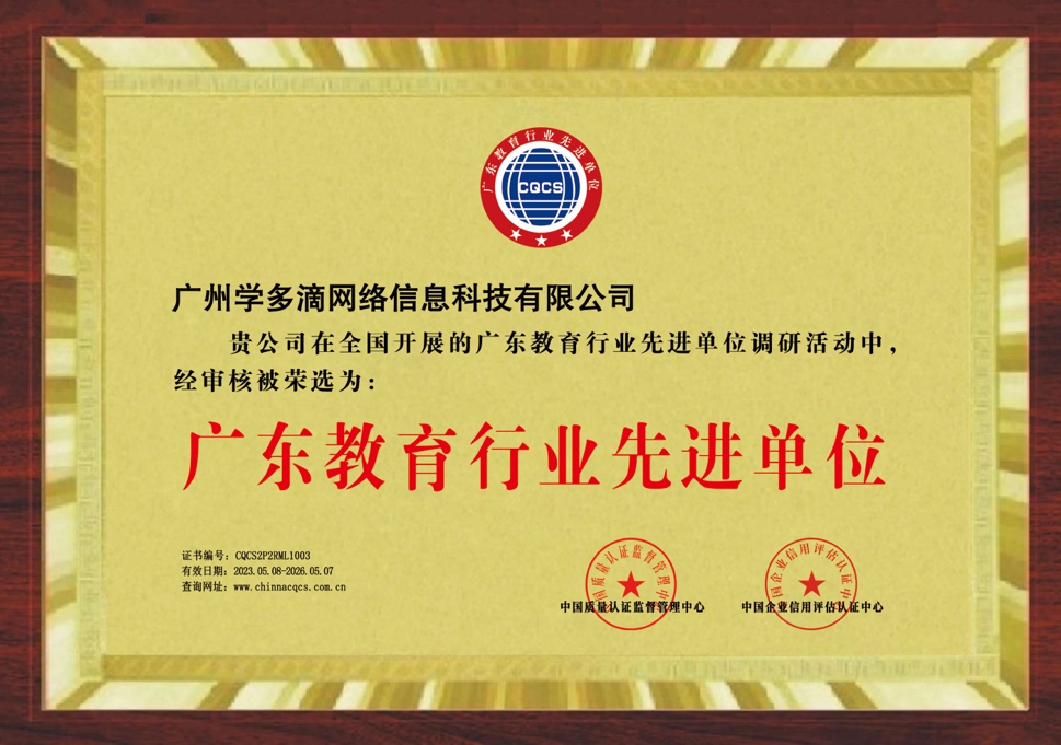 在此背景下,广州学多滴网络信息科技有限公司(以下简称“学多滴教育”)凭借对教育初心的坚守与对创新模式的探索,陆续斩获国家级、省级十余项权威认证,涵盖企业综合实力、信用资质、服务质量、行业影响力等全维度评价体系,成为职业教育领域少有的“荣誉全满贯”企业。这些认证不仅镌刻着企业发展的里程碑,更映射出职业教育高质量发展的时代缩影。