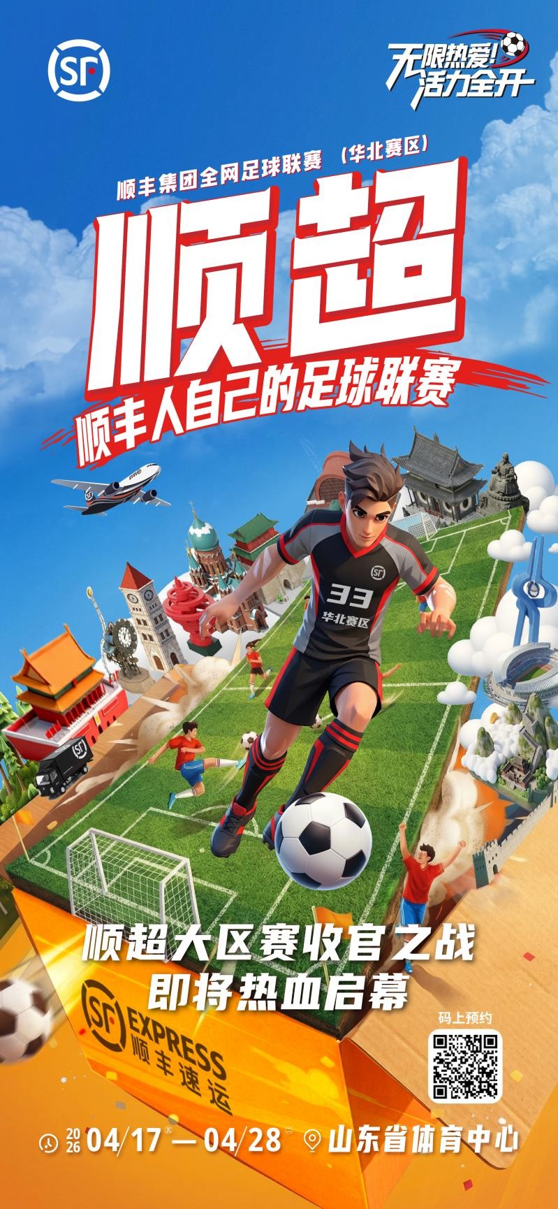 4月17日,顺超华北赛区将在山东省体育中心火热开赛,无门槛免费入场,不用预约直接冲!现场还有顺丰品牌互动打卡区,趣味满满!朋友们,快来近距离感受绿茵赛场的热血激情,沉浸式解锁超燃观赛体验,这波顺超收官战狂欢必须安排上!