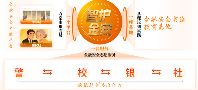 项目团队通过构建“3个1”的产品体系筑牢金融安全防线。一个平台—金融安全产教融合平台,通过多模态大模型技术与数字孪生技术提供沉浸式学习与模拟测试;一座基地—金融安全实验教育基地推动产教融合与金融风险研究;一套服务—金融安全志愿服务,联动警、校、银、社四方力量,走进社区、校园开展针对性帮扶,将防护网络铺展至基层末梢。