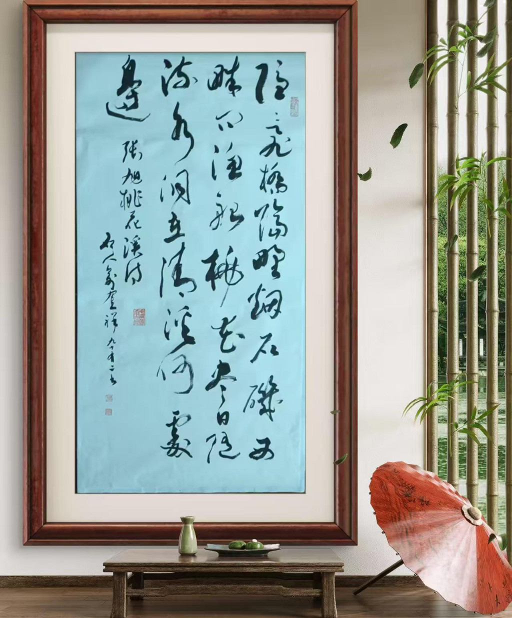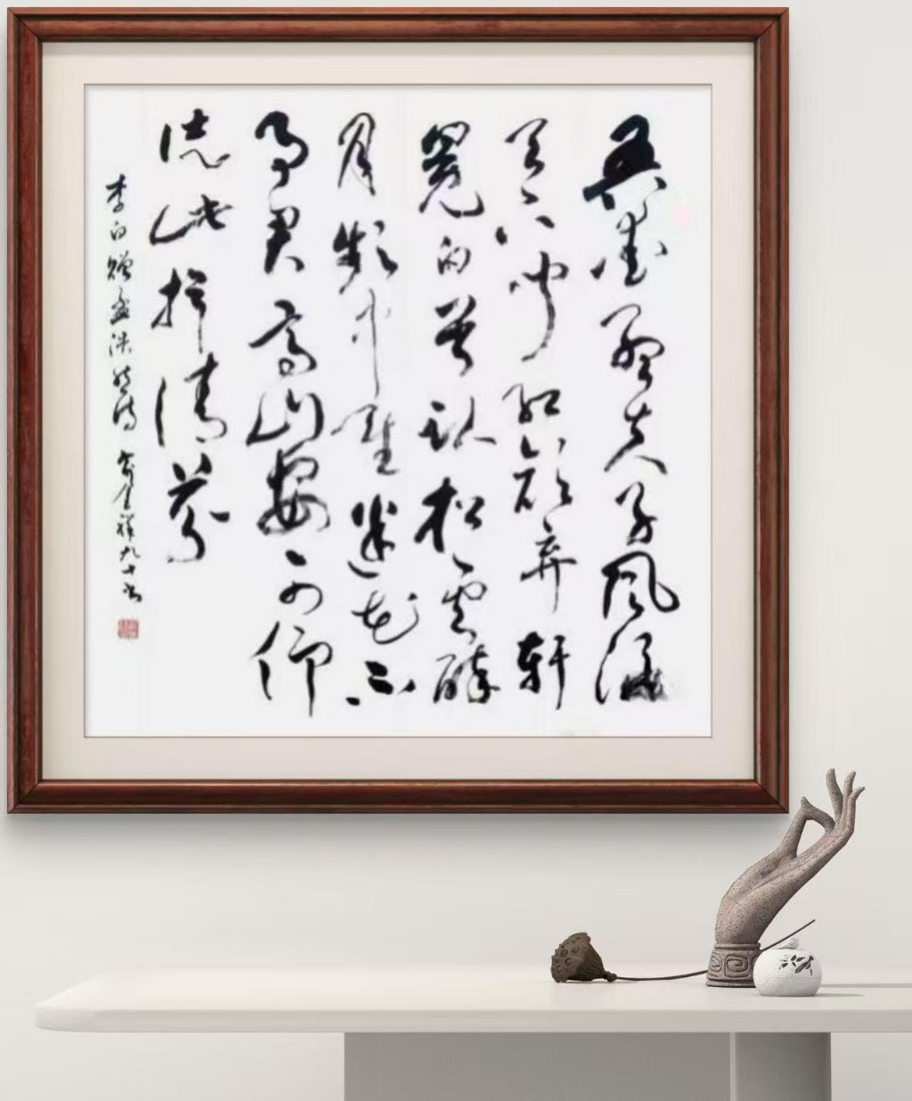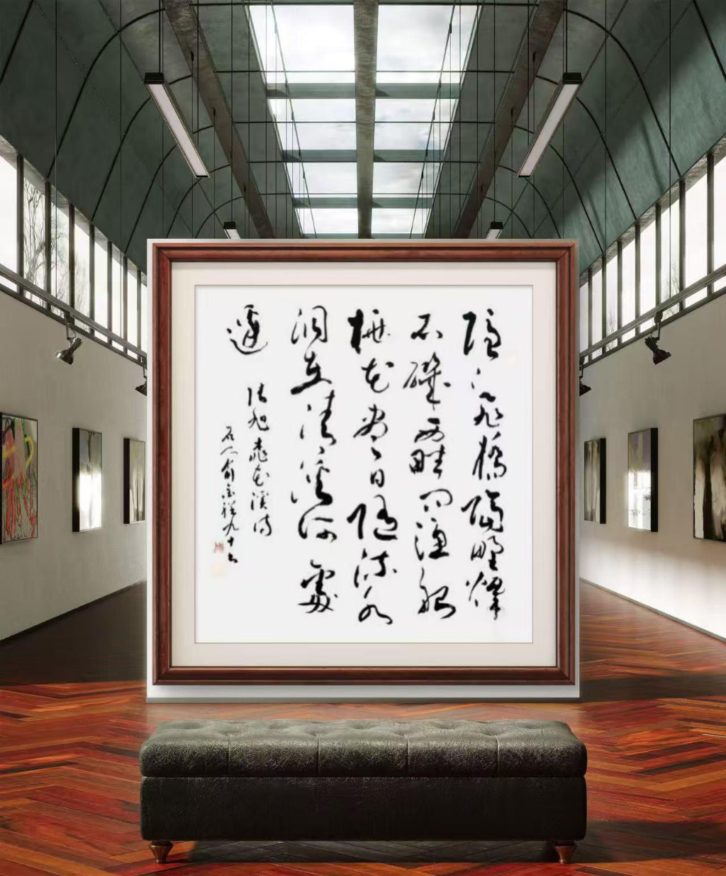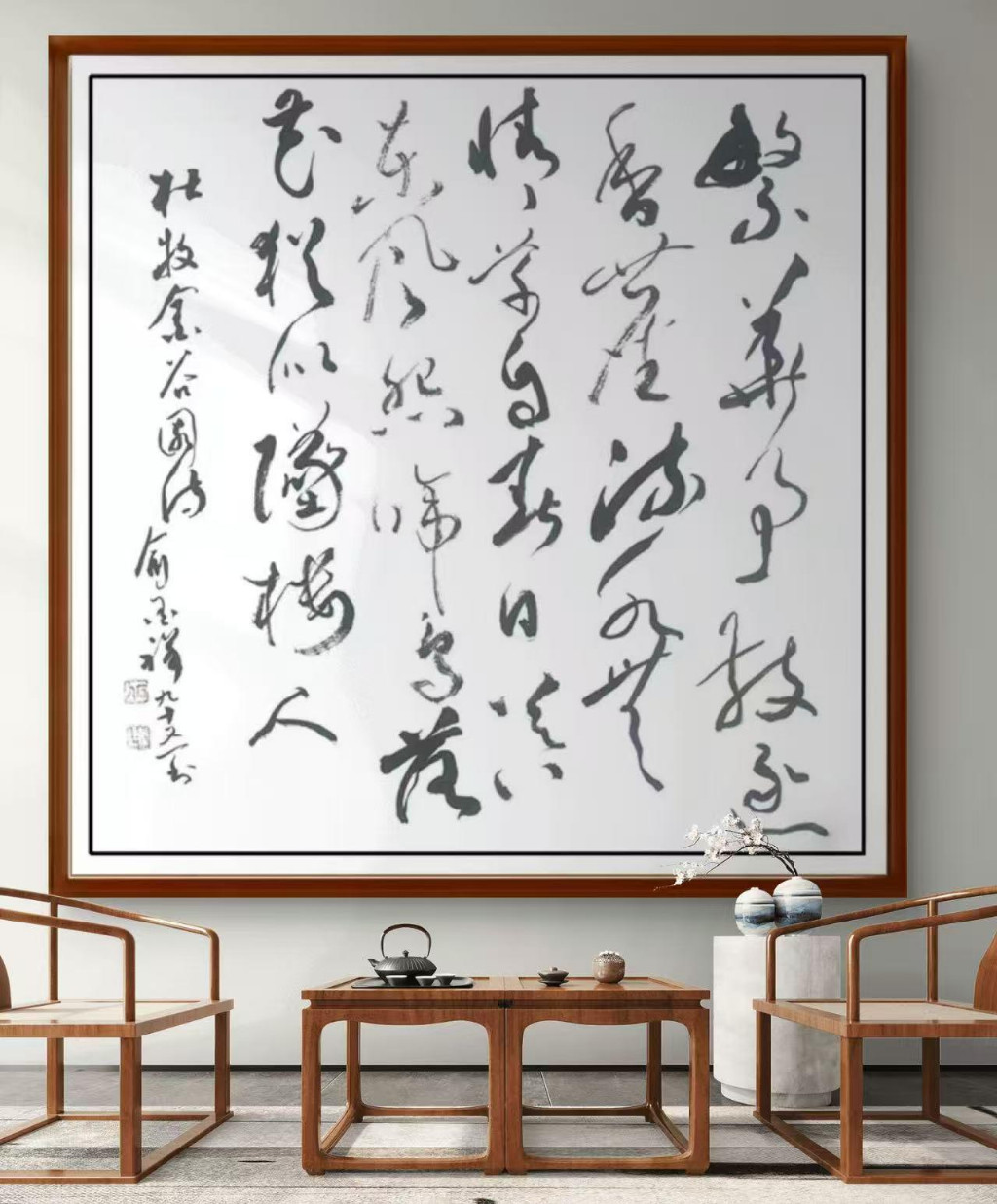 这种创新融合并非简单的拼凑,而是在对传统书法深刻理解的基础上的升华。他注重作品的整体布局和节奏韵律,通过疏密有致的构图和变化多端的笔墨,使作品在传统与现代之间找到了一种平衡。他的作品既保留了传统书法的神韵和气质,又展现出了现代艺术的创新和活力,开创了书法创新的新格局。