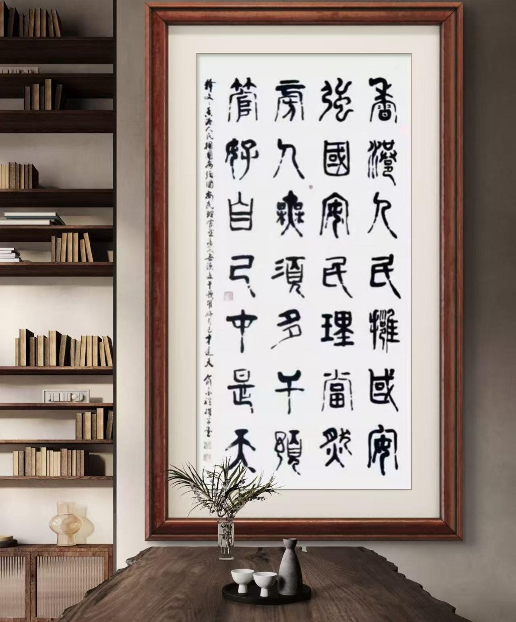 在创作过程中,他深入研究各种书体的特点和相互之间的联系。楷书的规整、隶书的波磔、篆书的圆转,他在这些不同的线条和结构中寻找着融合的可能性。他尝试将篆书的古朴线条融入隶书之中,使隶书更具历史的厚重感;又将楷书的端庄结构与篆书的神秘意象相结合,创造出独特的视觉效果。