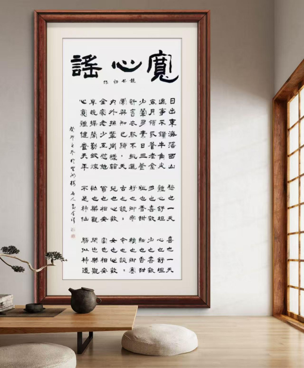 他的创作心路历程充满了对书法艺术的热爱和执着。他常常沉浸在书法创作中,忘却时间的流逝。在他的工作室里,常常可以看到他挥毫泼墨的身影,那一笔一划都凝聚着他对书法艺术的深情。他用自己的行动诠释着对艺术的追求,不为名利,只为心中的那份热爱。