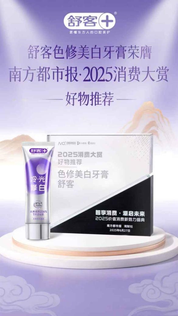 荣誉加持的背后,是薇美姿持续深化产品创新与品线升级的坚定布局。企业旗下舒客与舒客宝贝双品牌协同发力,全方位满足国民多元化口腔护理需求。成人领域,舒客深耕东方口腔护理需求,打造系列创新美白与护龈产品。以舒客色修美白牙膏为代表,凭借独创双效科技与双专利配方,构建高效温和的美白体系,凭借突出功效与体验感成为行业标杆单品,并通过多元内容与场景化沟通,深度链接年轻消费群体。