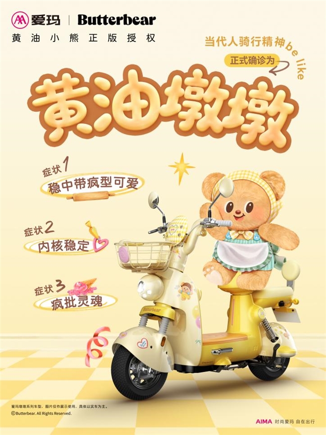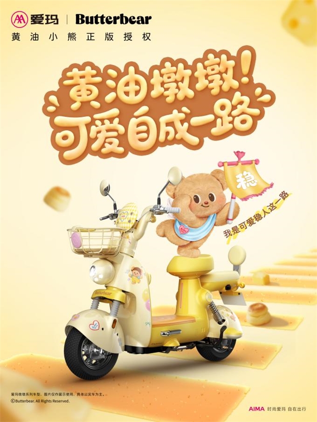 不仅如此,针对女性用户核心需求,爱玛聚焦“颜值、舒适、安全、智能”四大维度,打造系列女性友好车型:针对性优化车身设计,让女性骑行更轻松;定制化配色、细节装饰贴合女性审美;智能系统、安全配置精准解决女性骑行痛点。与黄油小熊联名推出黄油墩墩,更是爱玛洞察“她经济”趋势、满足女性悦己消费需求的创新实践,以萌趣轻奢定位,为女性提供兼具情绪价值与实用功能的出行选择。