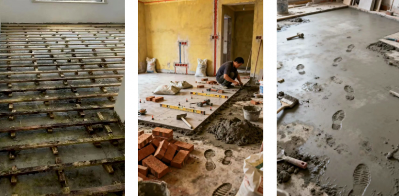是蹲在满是水泥灰的工地里,等上十几天才能干透的传统自流平?还是勉强用着两三年就发霉腐烂的木龙骨地面,眼睁睁看着地板变形、走路吱呀作响?