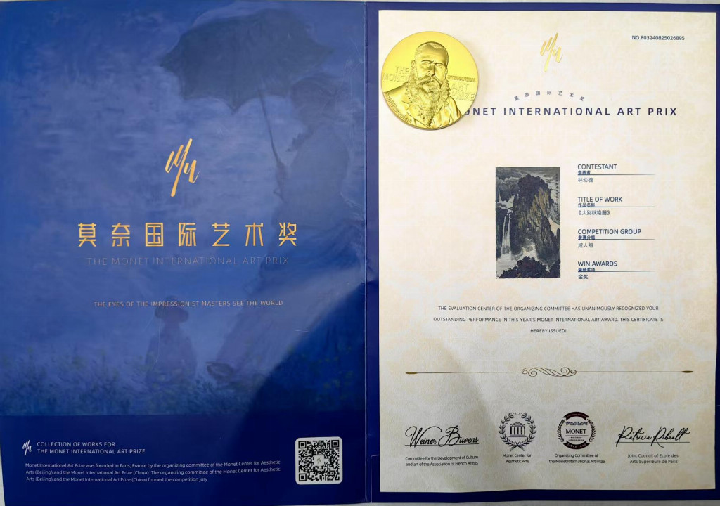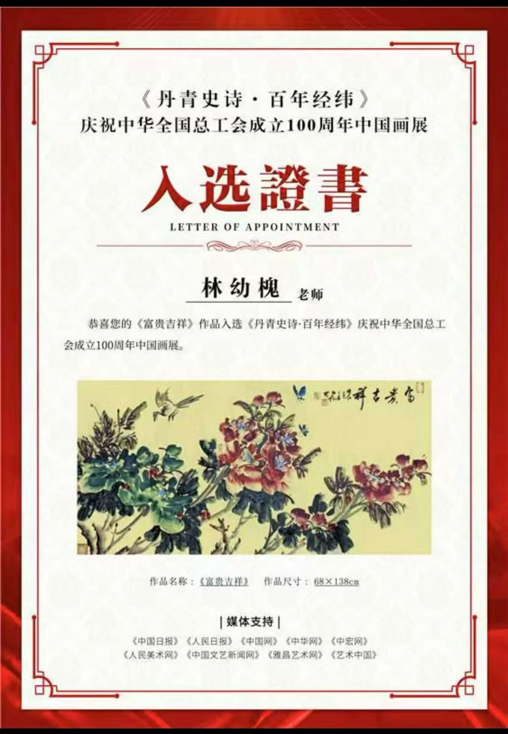 2014年林幼槐老师参加中央数字书画频道第四届书画频道迎新春美术作品展播,2016年被中国文联,中国书法家协会联合表彰为"送万福,进万家"先进个人,2017年获中国第八届书画大赛特等奖。在中美法三国和一带一路沿线国分别发行个人邮票专集。2019年三套个人书画邮册,在国际集邮展览会上展出。今年,书法作品“江山如画”作为国礼被吉尔吉斯共和国总理府收藏,并由吉方副总理奥穆尔别克娃·阿尔滕纳依签发荣誉证书。2024年9月获莫奈国际艺术金奖。
