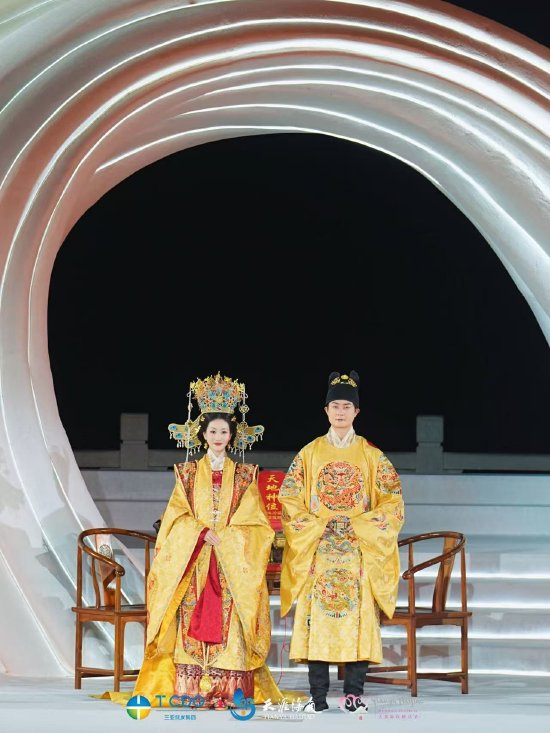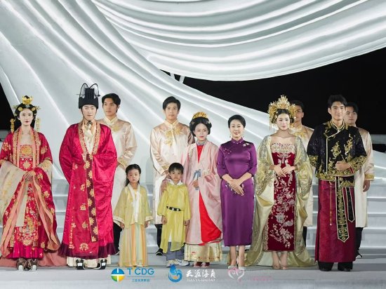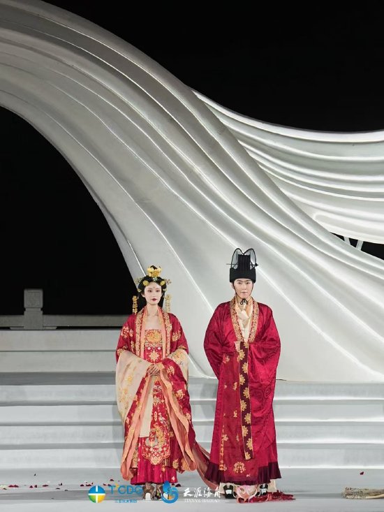 当晚,一场“传统礼赞·时尚婚典”的大型婚俗秀将开幕盛典推向高潮。演出依次呈现唐代婚俗秀、明代婚俗秀、新中式婚俗秀与西式婚俗秀四个篇章,并穿插系列主题舞蹈,生动展现不同时代与风格的婚俗文化演变。整场演出融合传统礼仪与现代风尚,为观众奉上一场贯穿东西、跨越千年的浪漫文化盛宴,赢得现场阵阵掌声。