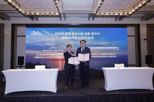 以济州至青岛直航海上航线开通为契机,济州经济通商振兴院与青岛西海岸新区保税物流中心签署战略合作协议,也将共同推动物流成本降低,以及运输时效的提升。据了解,该保税物流中心总面积达42.5万平方米,集保税仓储、冷链设施、跨境电商平台于一体,未来,也将为济州商品对华出口提供一站式物流服务。